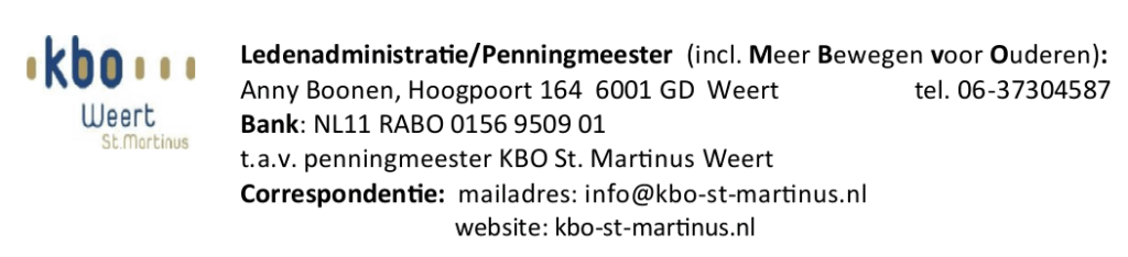 per 1 januari 2025 verhoging contributie KBO St. Martinus naar €30,= per jaar
